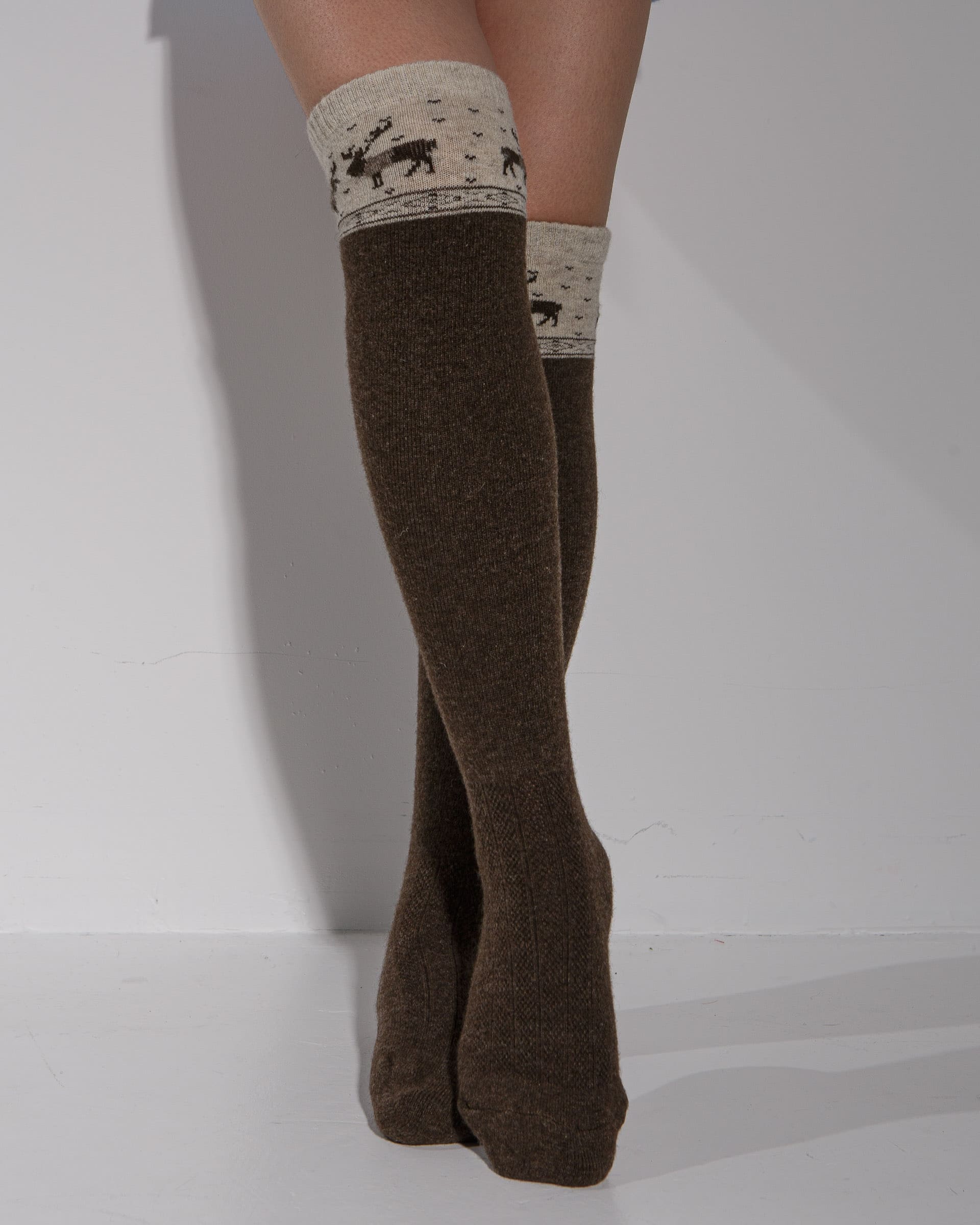 Теплые гольфы из 100% шерсти темно-коричневые с рисунком