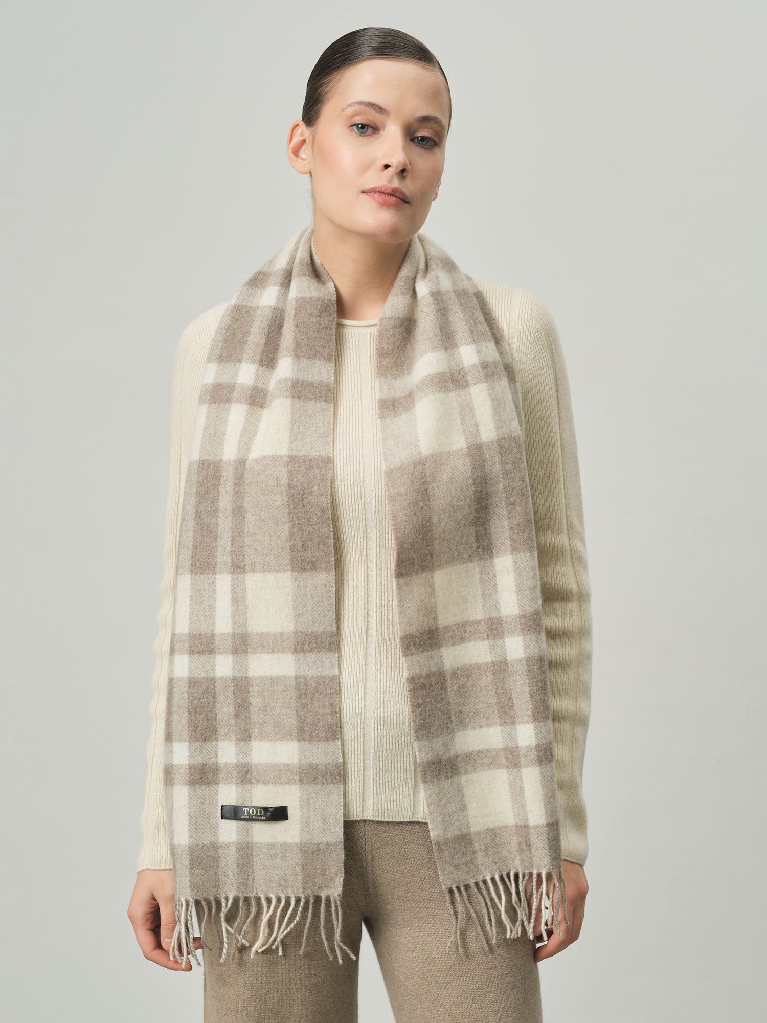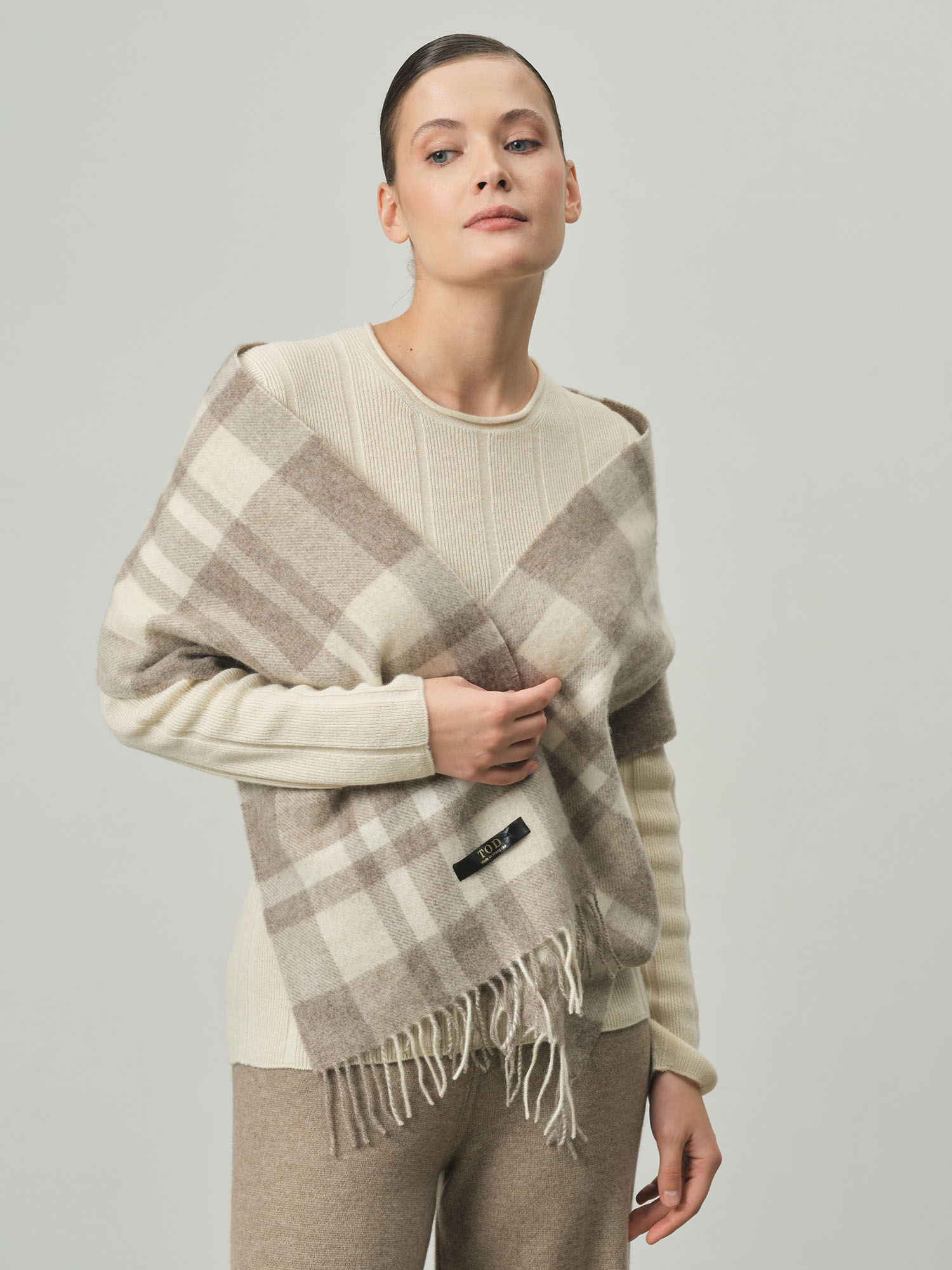 Шарф из шерсти 01219 в оттенке какао-кремовый — элегантный и уютный аксессуар для холодного сезона. Классический клетчатый узор придаёт изделию выразительность и делает его стильным дополнением как повседневных, так и более элегантных образов. Шарф легко сочетается с пальто, тренчами и трикотажем, добавляя образу теплоту и завершённость.