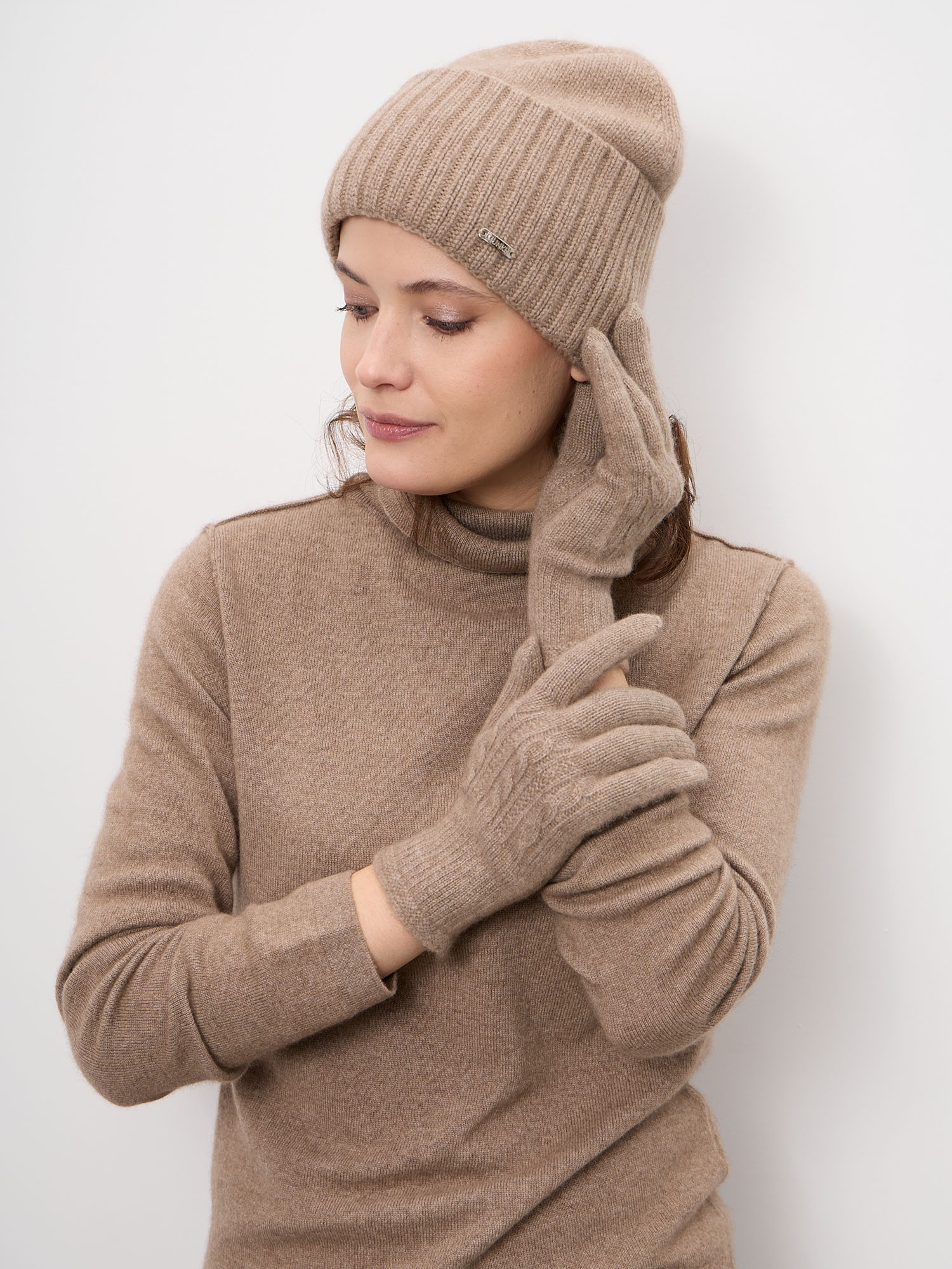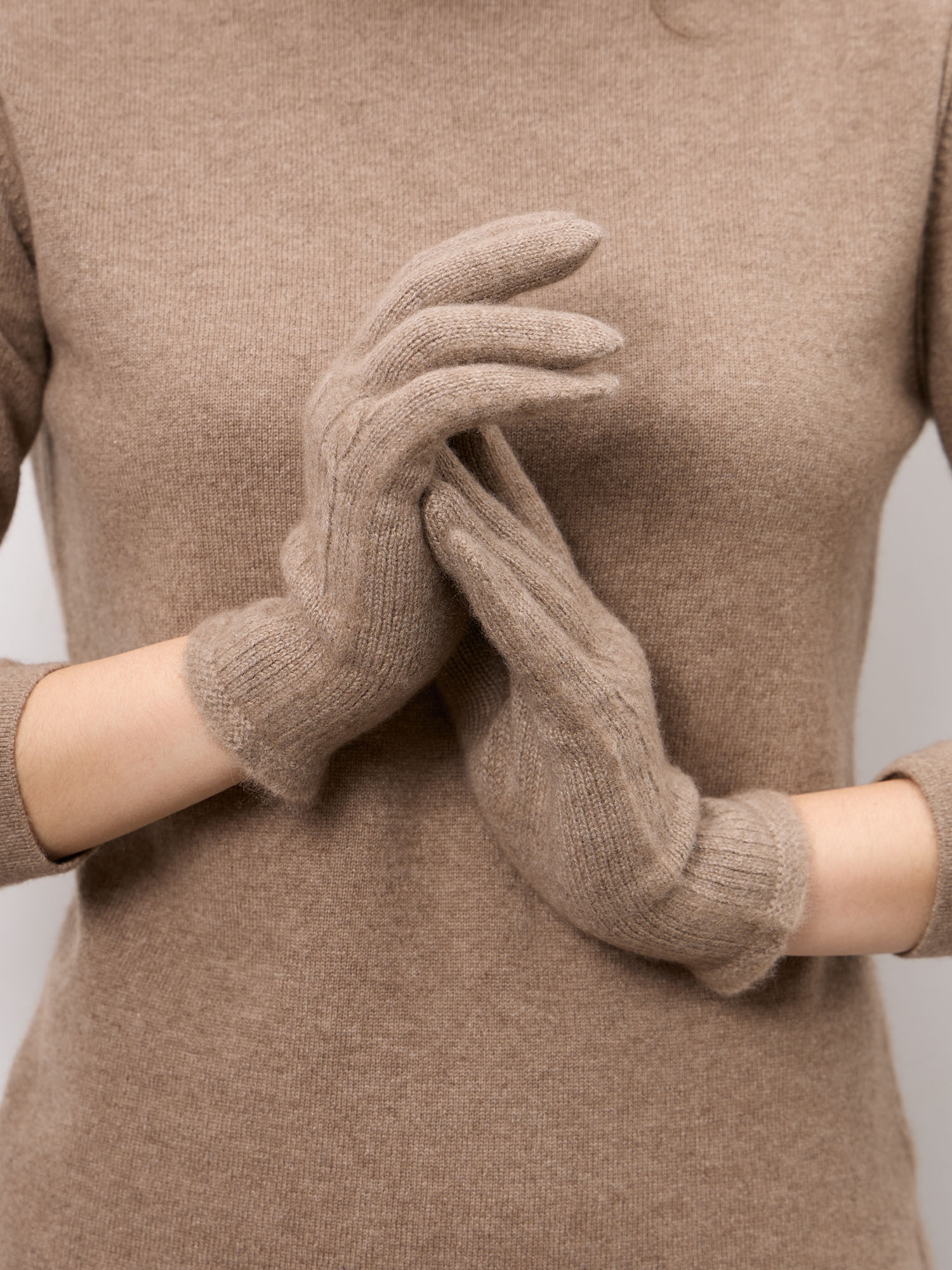 Перчатки выполнены из натурального кашемира — одного из самых ценных и редких материалов. Кашемир отличается исключительной мягкостью, лёгкостью и высокой теплоизоляцией. Он обеспечивает естественную терморегуляцию и подходит даже для чувствительной кожи, даря комфорт в любых условиях.