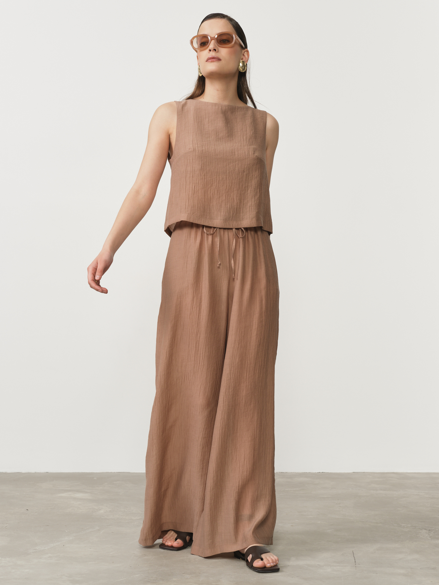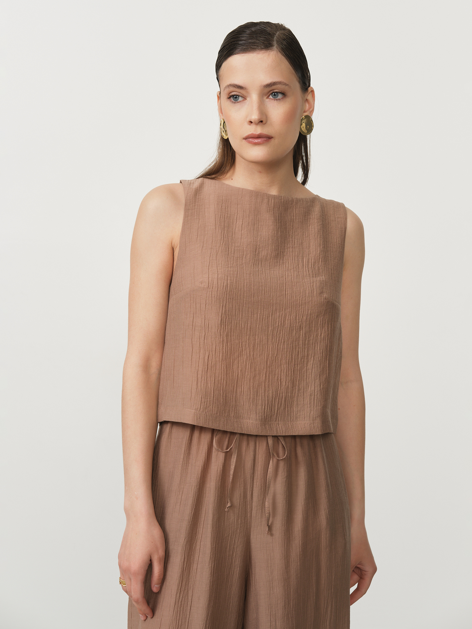 Свободный прямой силуэт без рукавов. Минималистичный крой делает модель универсальной и легко сочетаемой.
