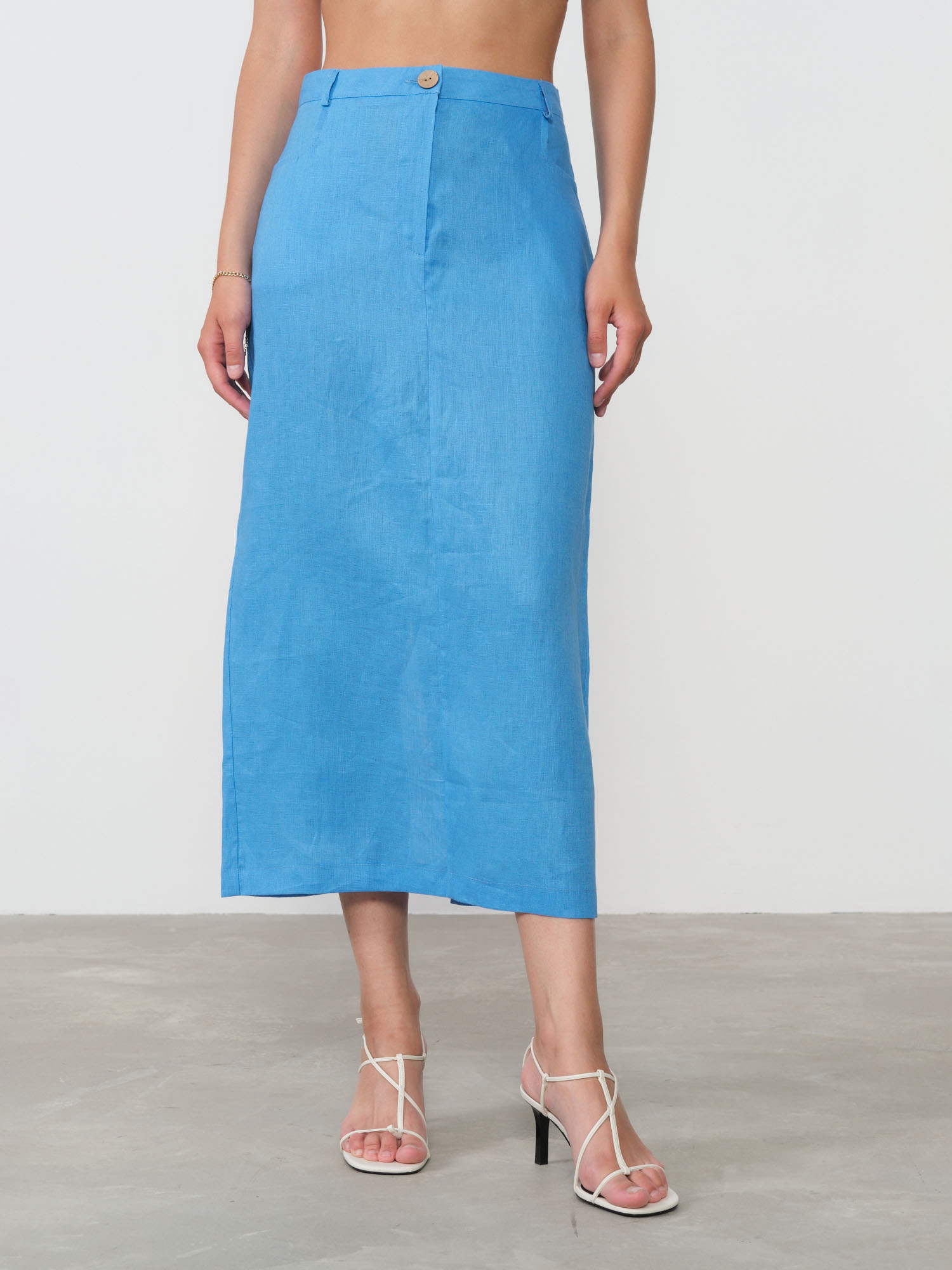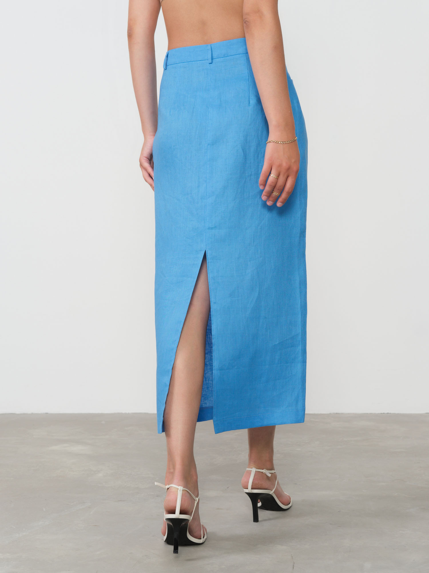 Аккуратная посадка по талии, задний разрез для свободы движения, чистые швы, лёгкая фактура ткани, удобная посадка.